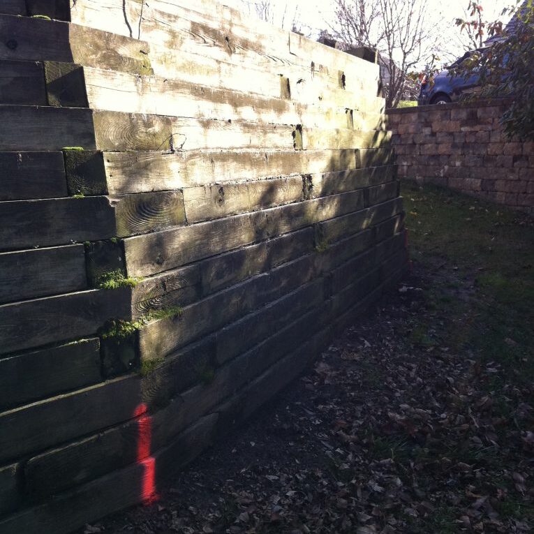 Timber wall construction prevailed in the 1970s and 80s as a cost effective way to create vertical grade changes. These walls were used to hold up driveways and swimming pools as well as hold back slopes to create useable flat spaces below.