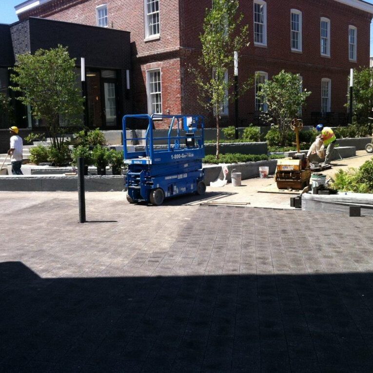 PVL worked alongside a site, concrete, mason, landscape, irrigation, and electrical contractors to complete the project on schedule. Closely managed logistics was key to pulling this project off. With limited storage space and changing traffic volume on a one way city street in a college town there was hourly and even up to the minute communication with trucks coming out of a New York bluestone Quarry, a Pennsylvania paver plant, and Maryland asphalt plant.